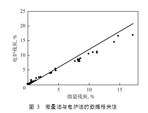 圖 6 微量法與電爐法的數(shù)據(jù)相關(guān)性